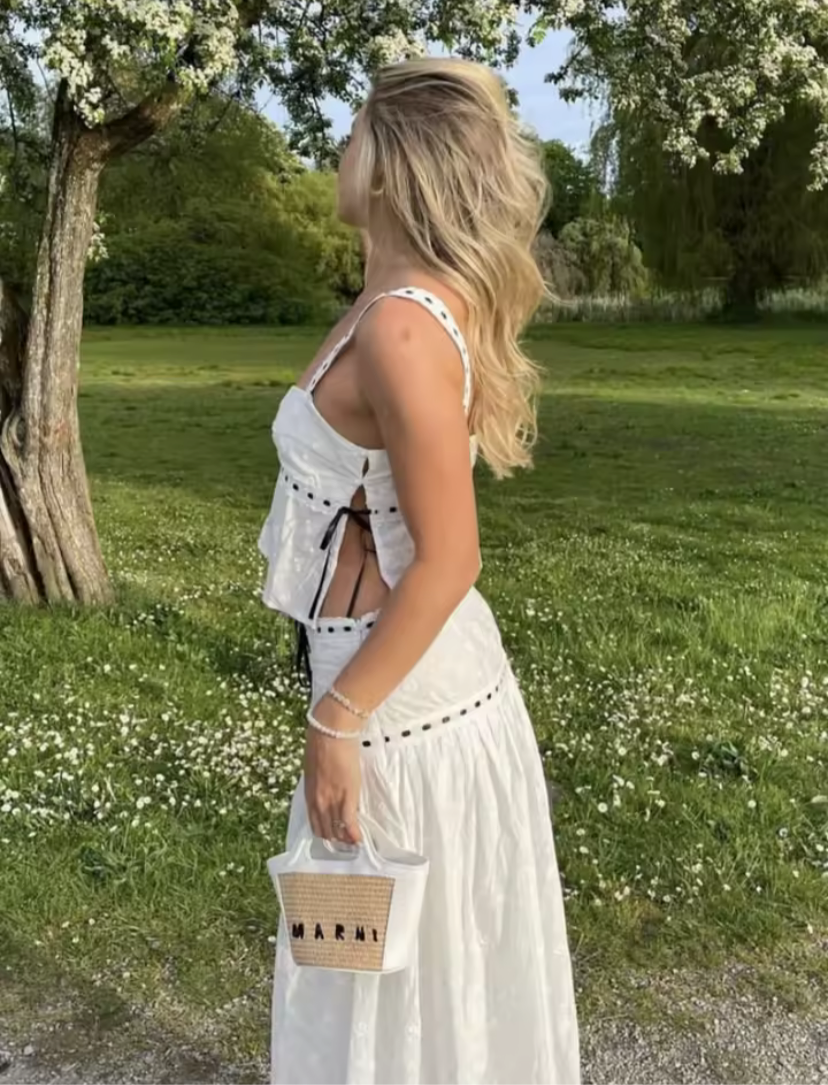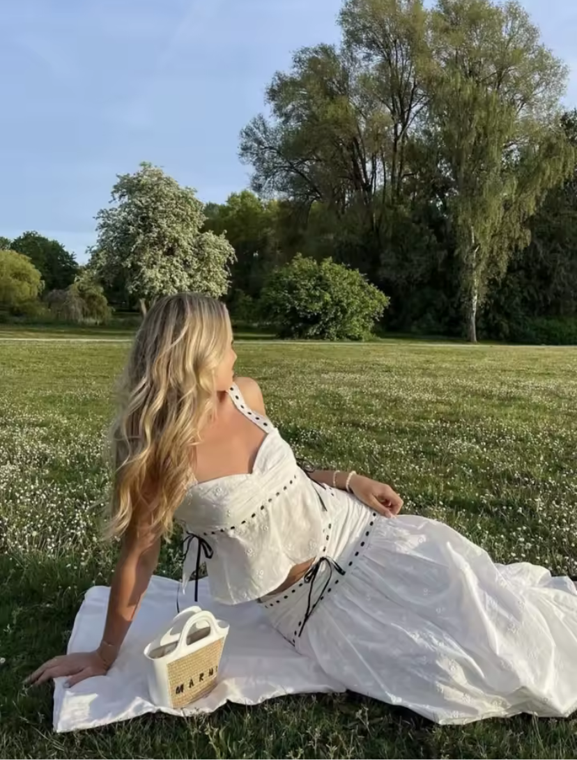 Color blocked lace up suspender+color blocked lace up skirt set for women