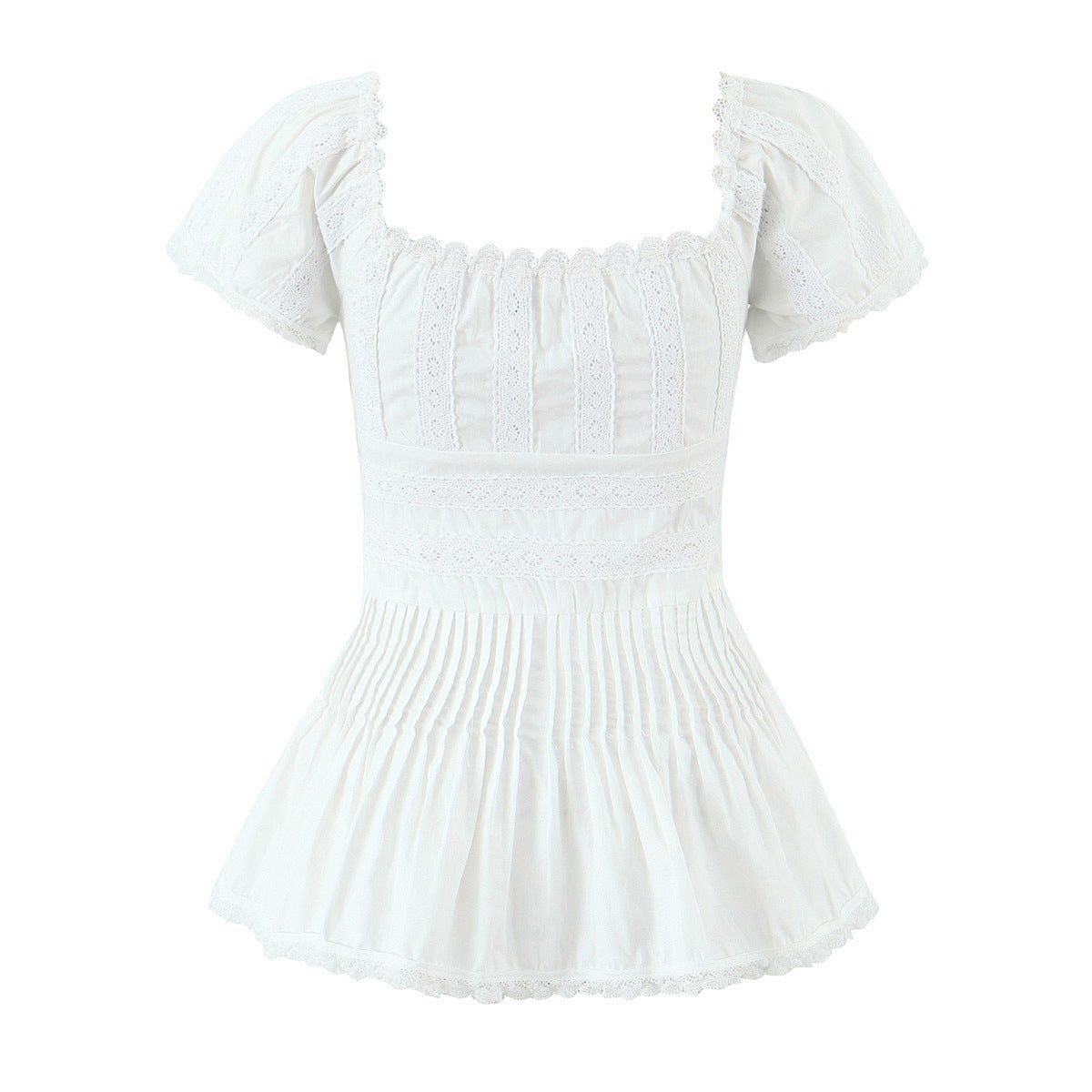Lace lace square neck slim fit pleated top for women