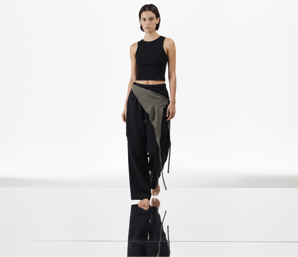 Pleated Patchwork Casual Pants Unisex Loose Wide Leg Straight Tube Sports Trousers