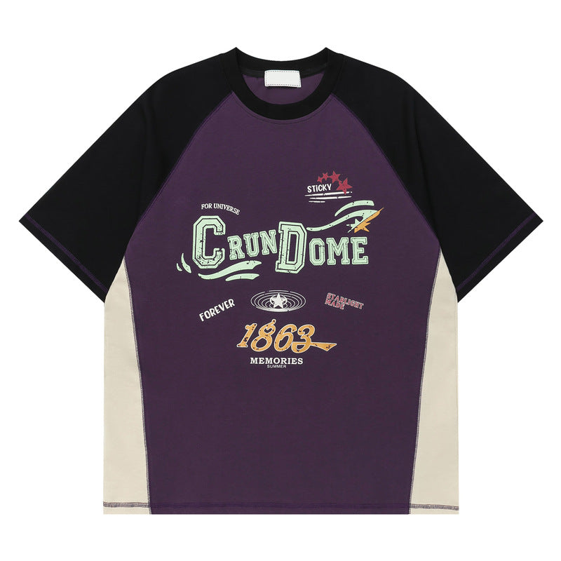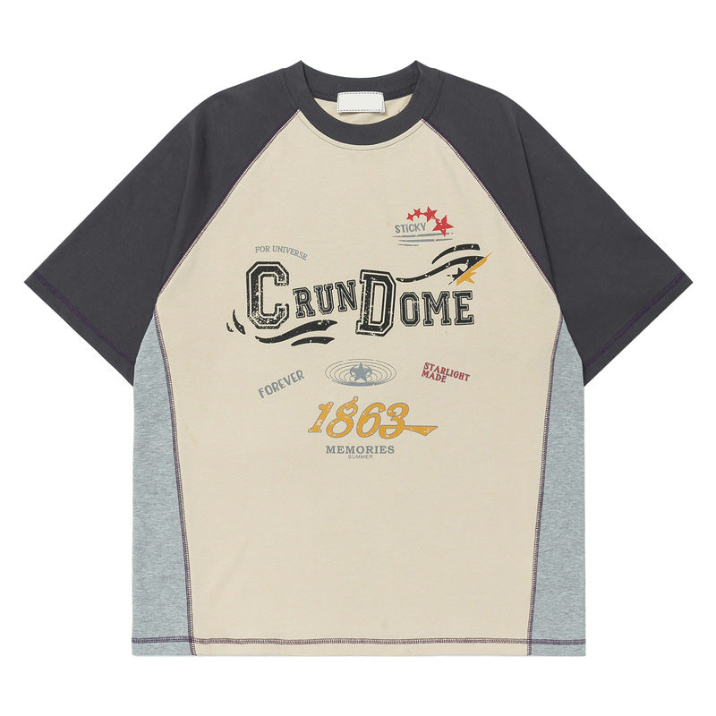 Short Sleeve T-Shirt Unisex Color Block Letter Graffiti Couple