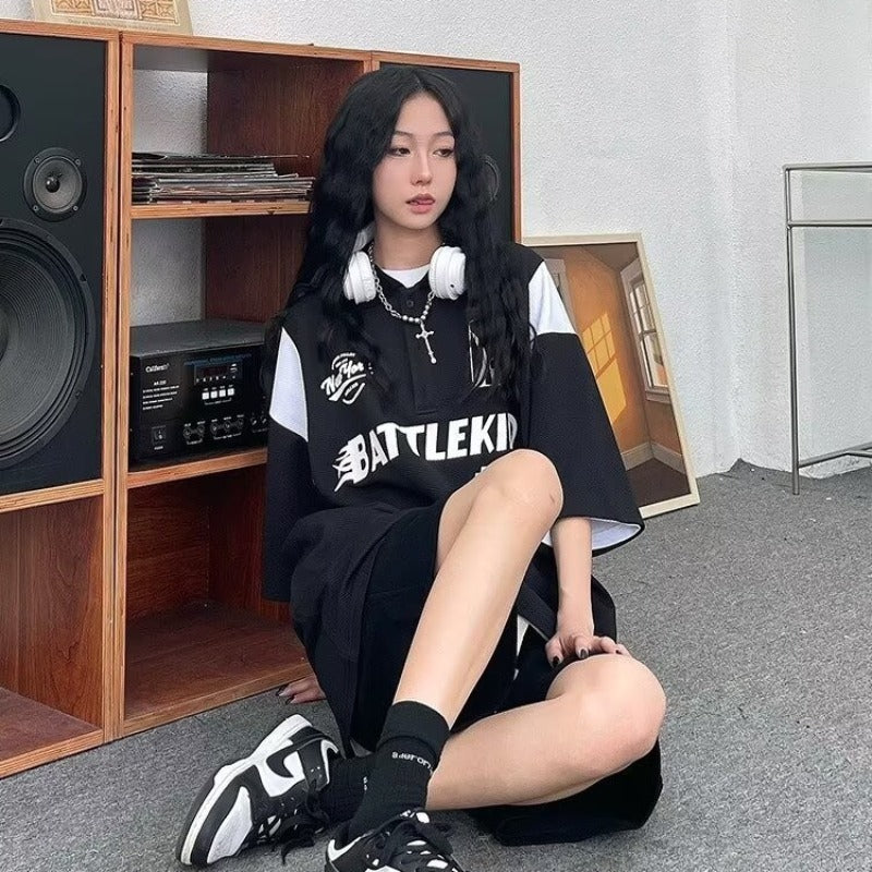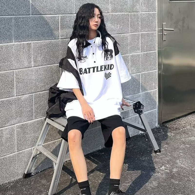 Short sleeved polo shirt men's color blocked couple T-shirt
