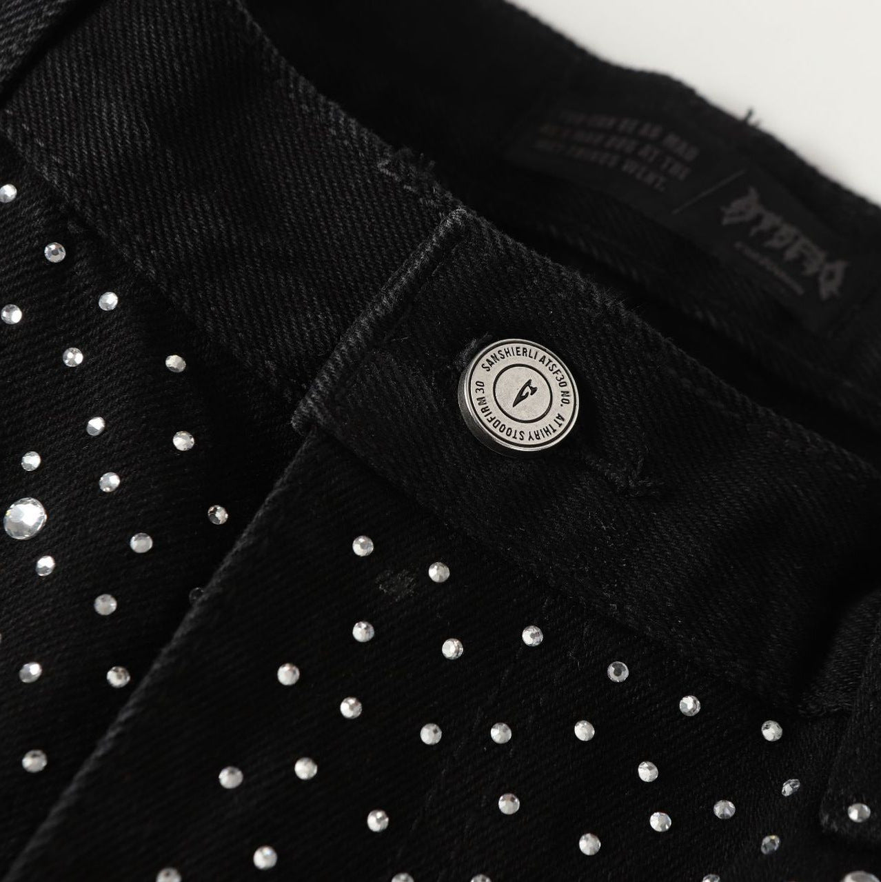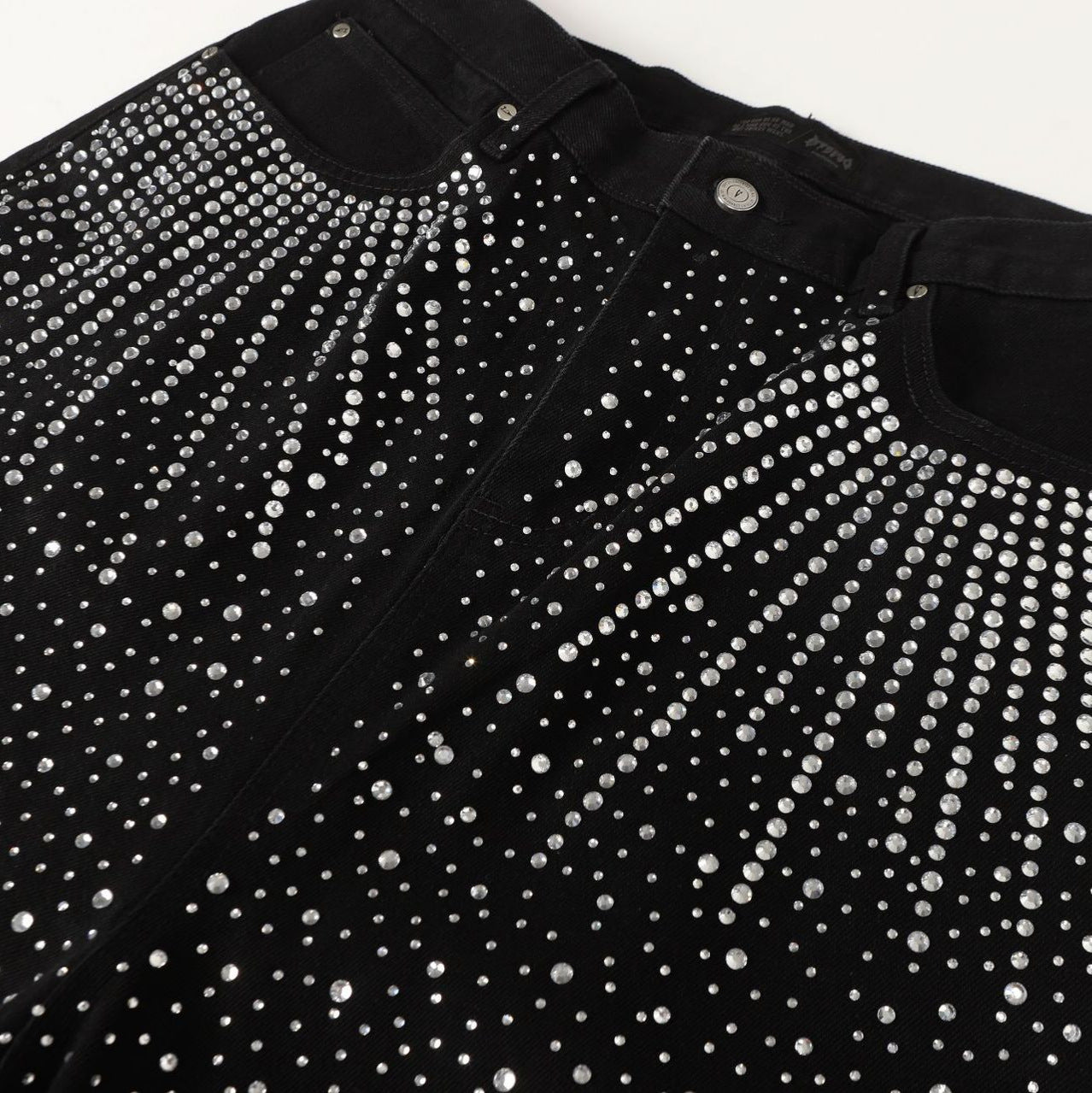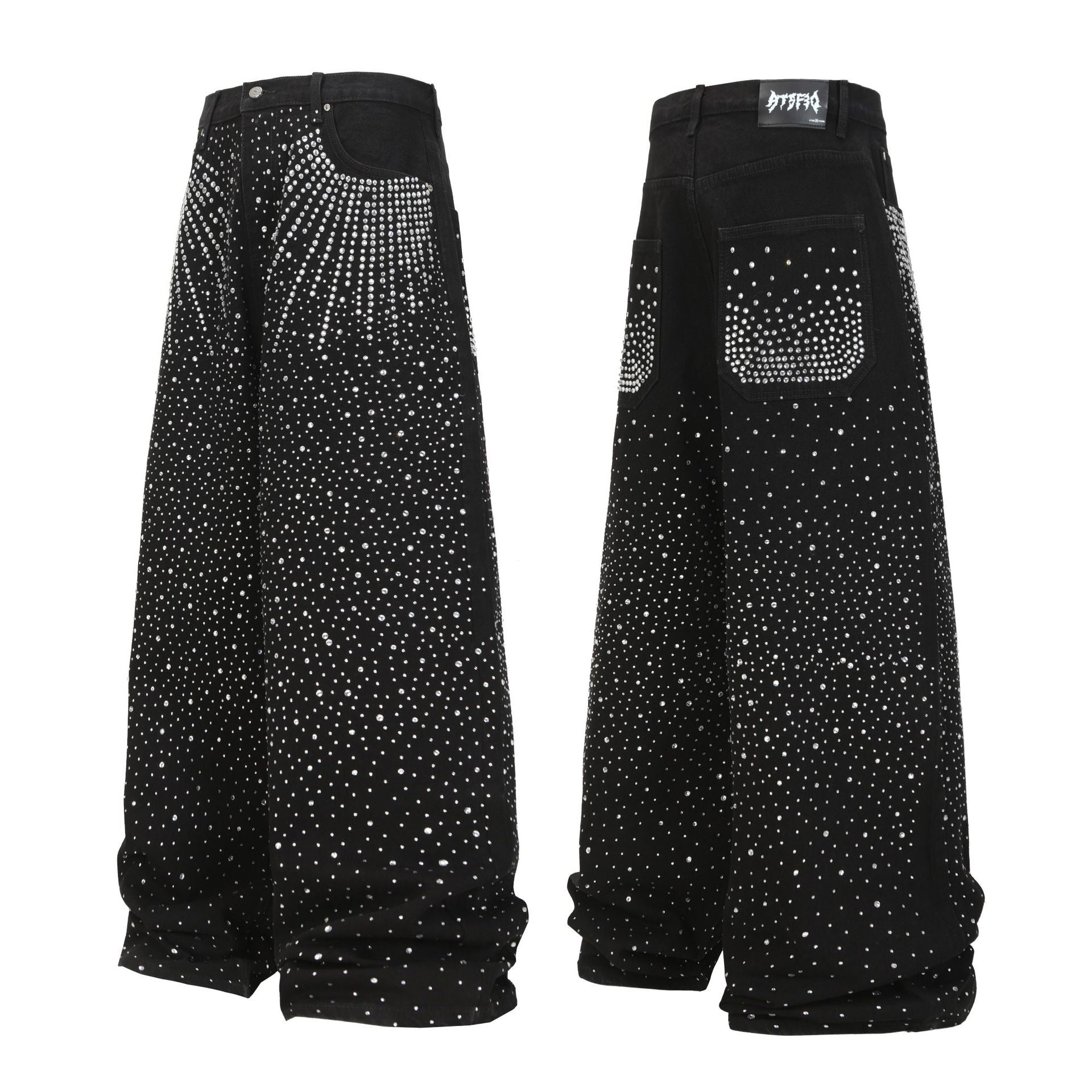 Street Style High-Quality Washed Beaded Loose Denim Long Pants